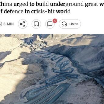 外媒:中国专家建议在西部地区建设地下防御网络,以保护关键的能源和防务设施,确保长期资源储备,并增强国家安全和应对危机的能力。中国能源和基础设施巨头—中国电力建设集团的首席技术专家张世殊提出,应将重要设施埋藏在地表下的深层,以便更加安全、难以被发现。