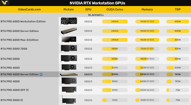 RTX PRO 4500此前只有常规的工作站版本,如今成为第二款服务器版本,可用于大规模机架部署。