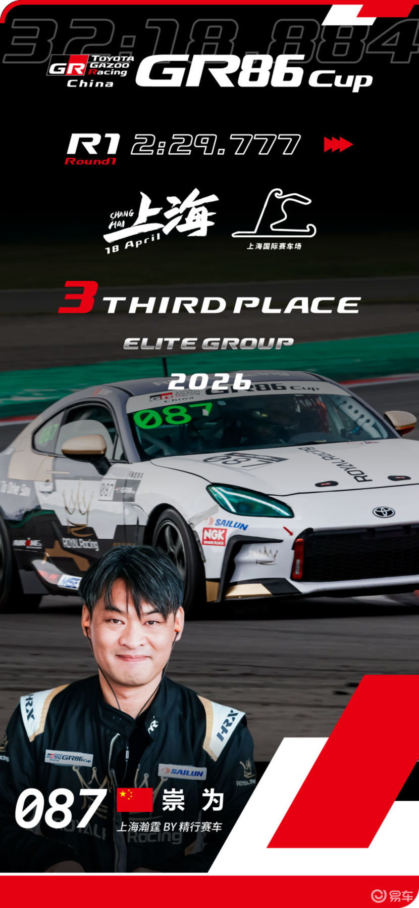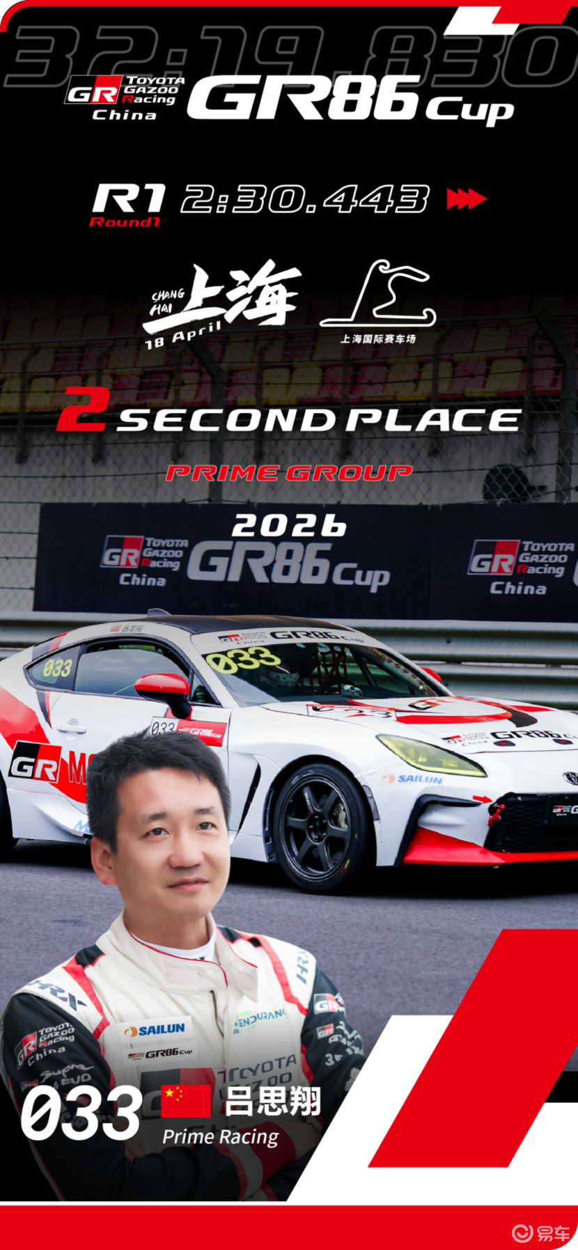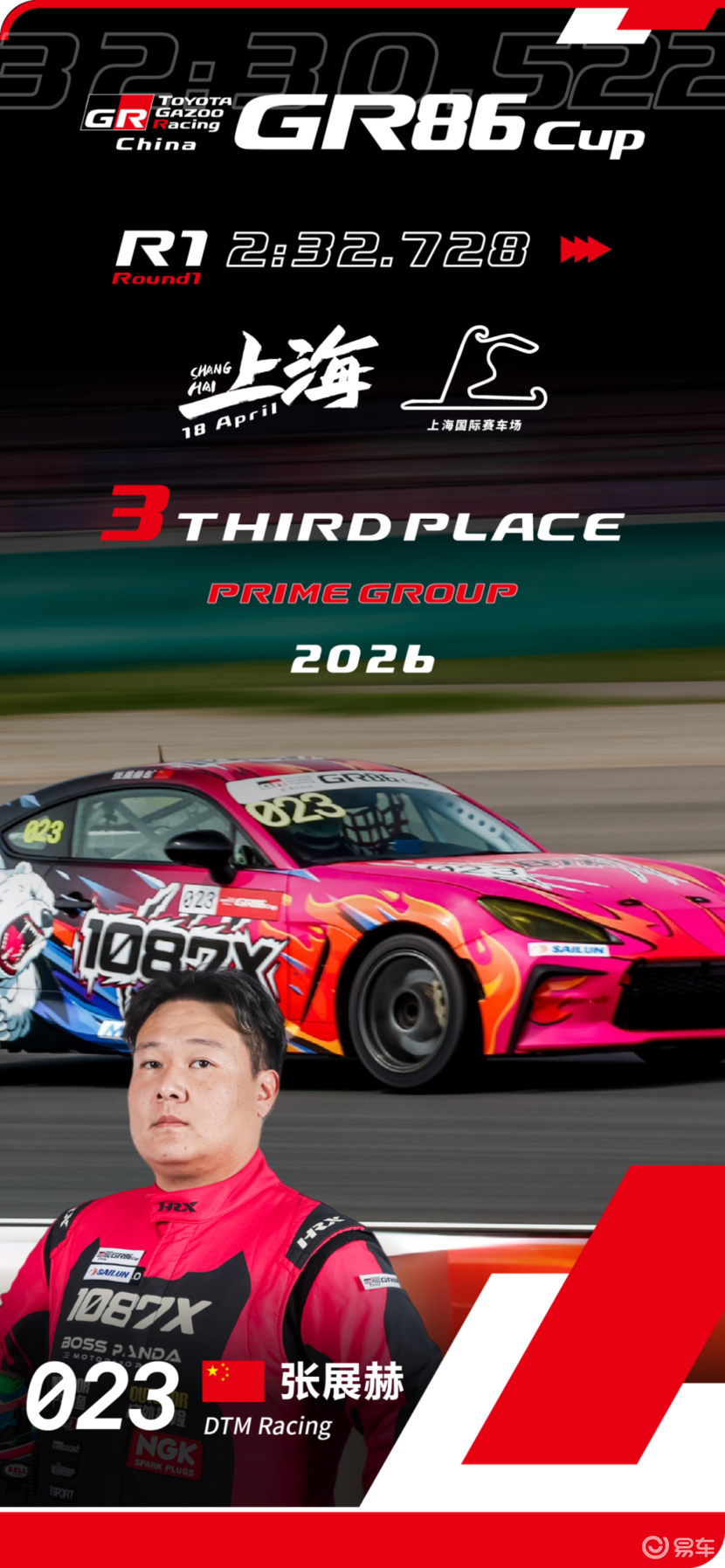 新赛季首回合对决战罢,三大组别冠军各有归属。4月19日,TOYOTA GAZOO Racing China GR86 Cup 2026将在上海国际赛车场迎来第二回合的终极较量,悬念再起,敬请期待。